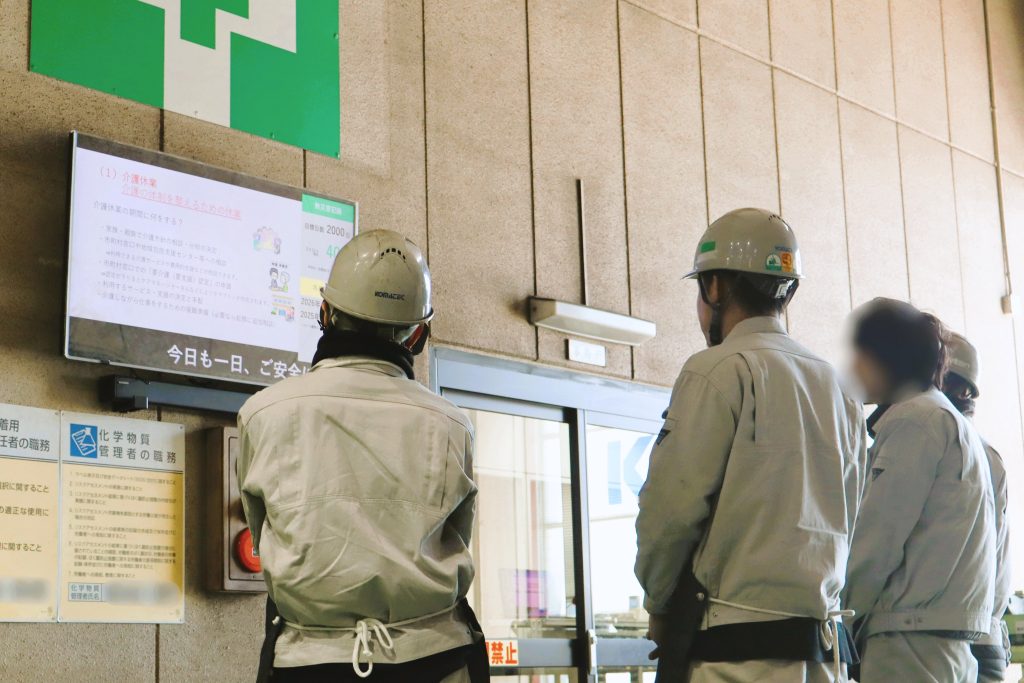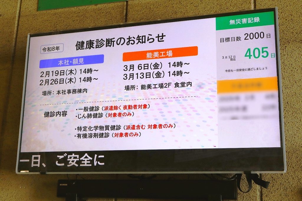 また工場では、各班で日を決めて、お昼休み後などにデジタルサイネージを確認する時間を設けて、見落としの無いようにしています。