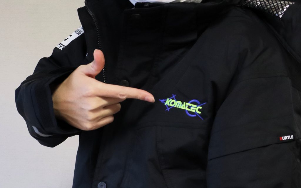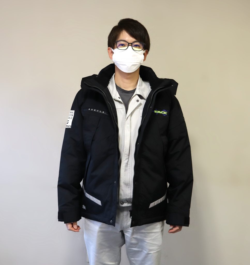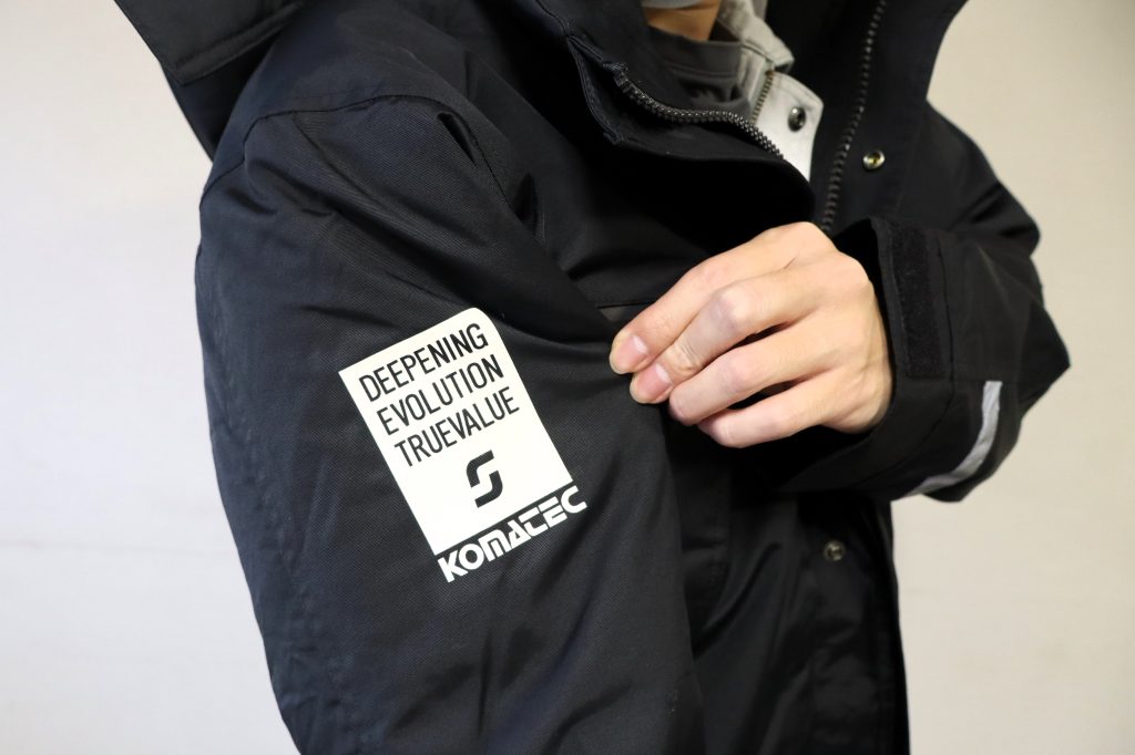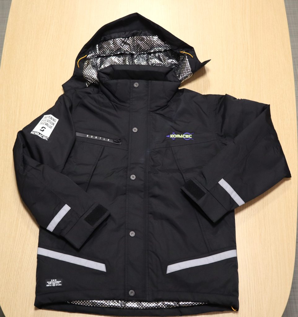防寒着はコマテックが来年65周年を迎えることもあり、その記念事業の一環としてリニューアルし、前倒しで全社員に1着ずつ支給されました。