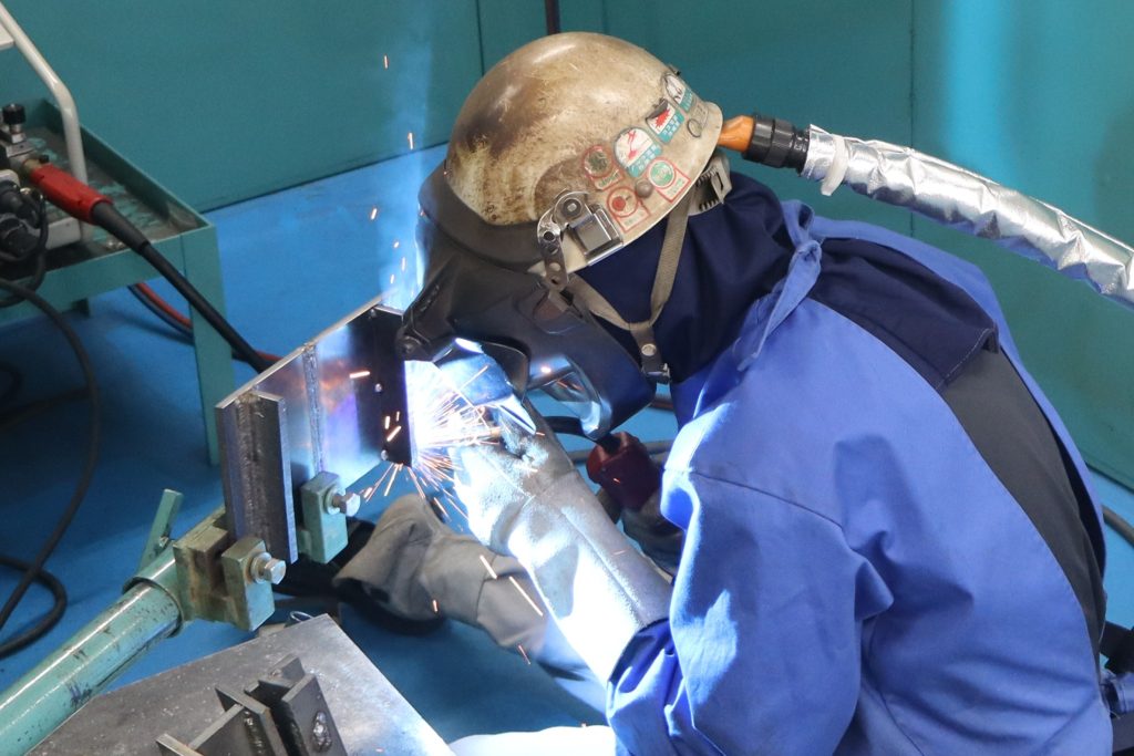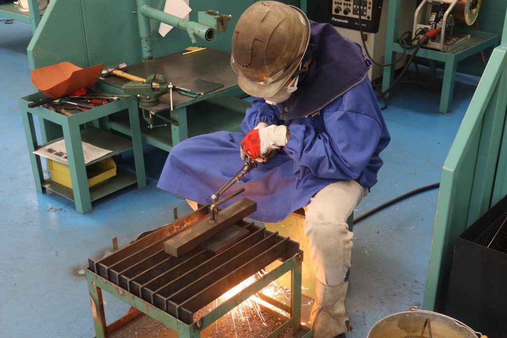 競技内容は、1枚の鉄板をガス切断し、その2枚を溶接するという内容です。